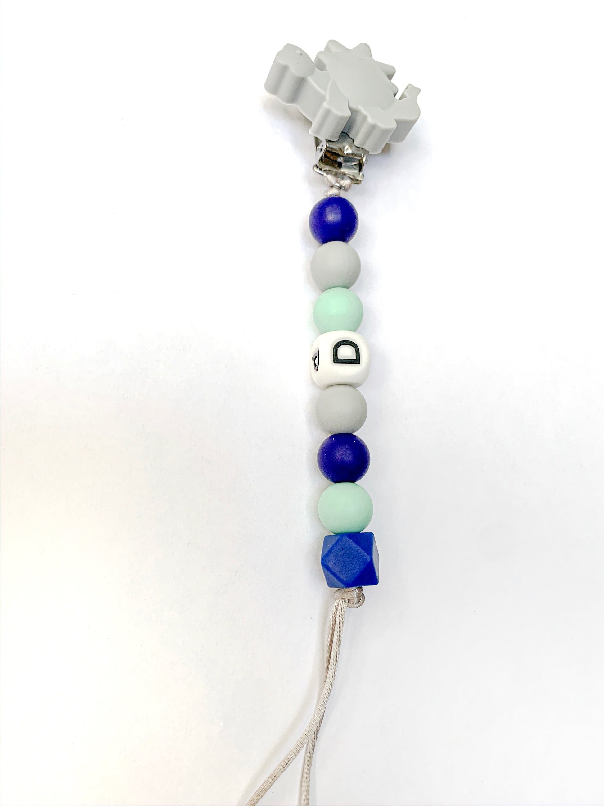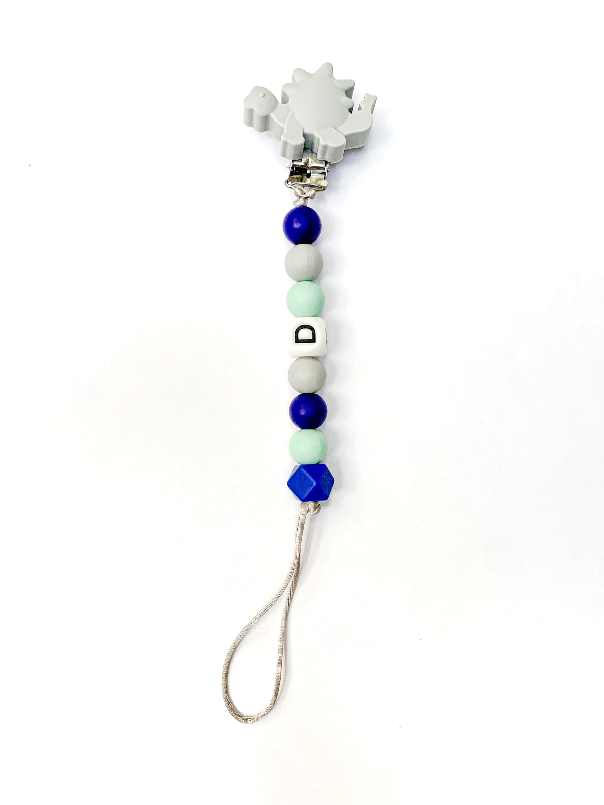 Portachupon cuentas de silicón, clip dinosaurio gris acero inoxidable