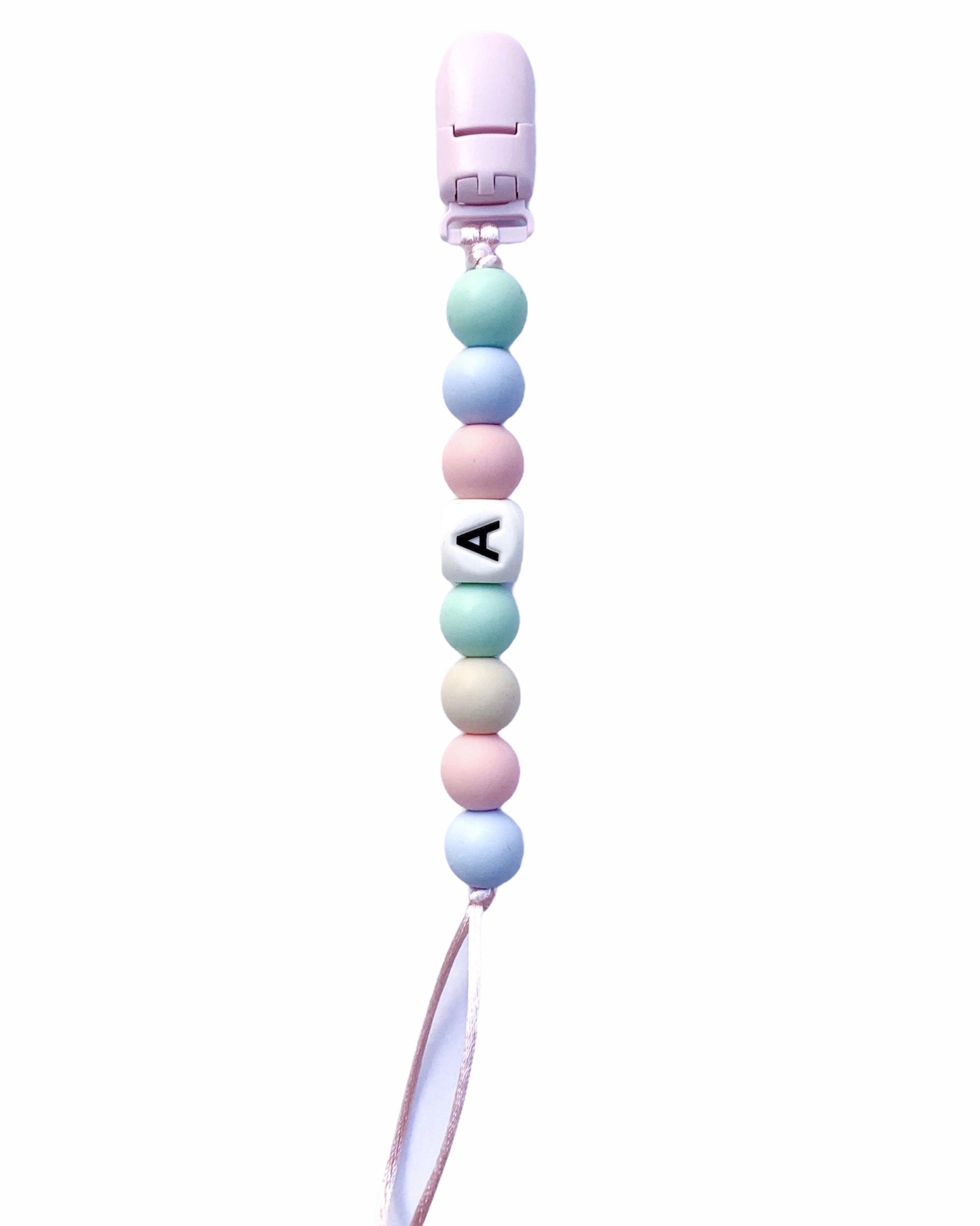 Portachupon cuentas de silicon, clip sencillo rosa de plastico