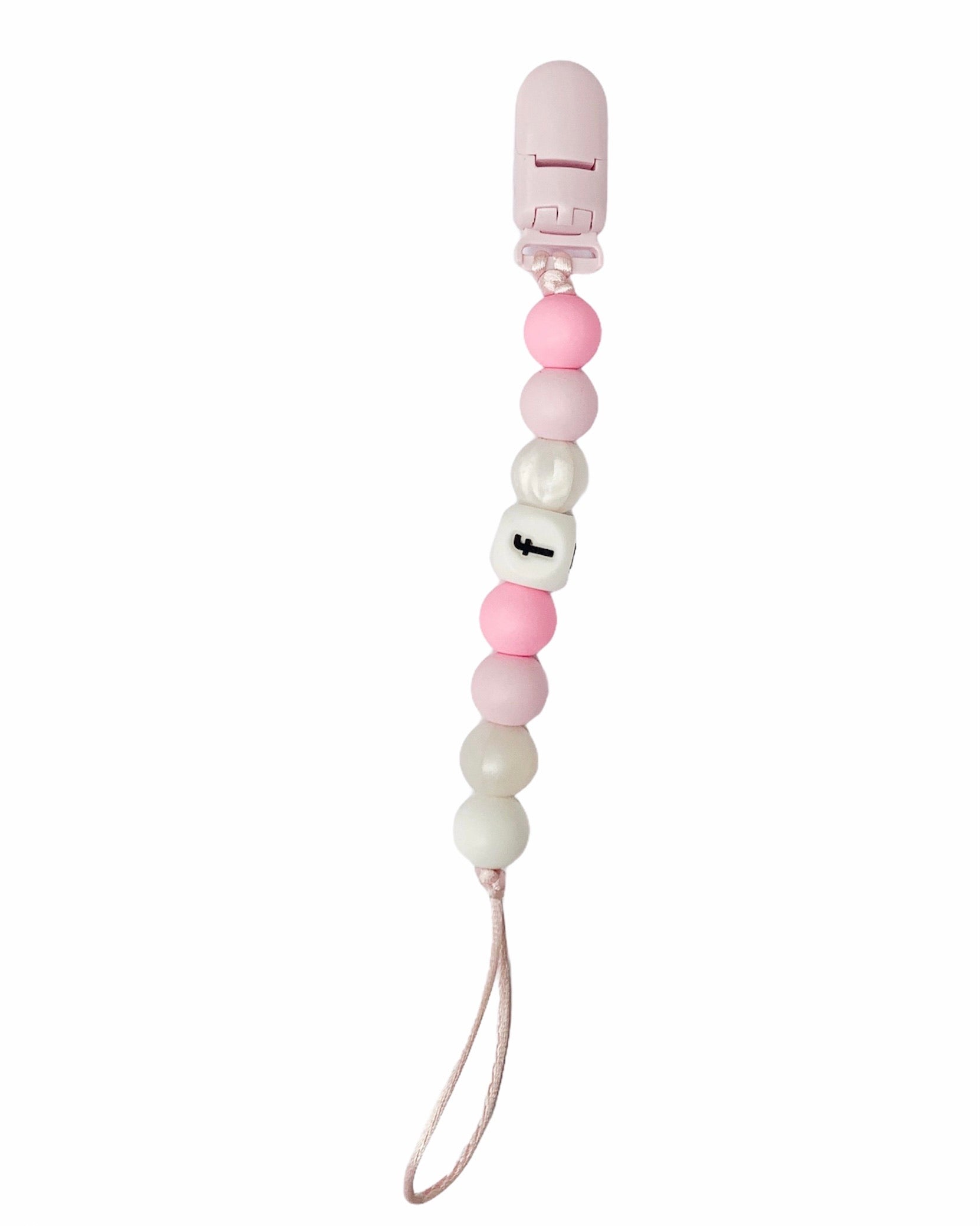 Portachupon cuentas de silicon, clip sencillo rosa de plastico